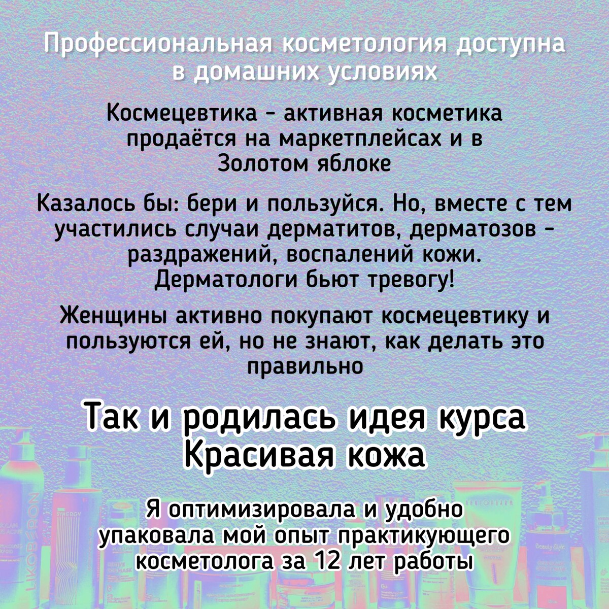 Я оптимизировала и удобно упаковала мой опыт практикующего косметолога за 12 лет работы