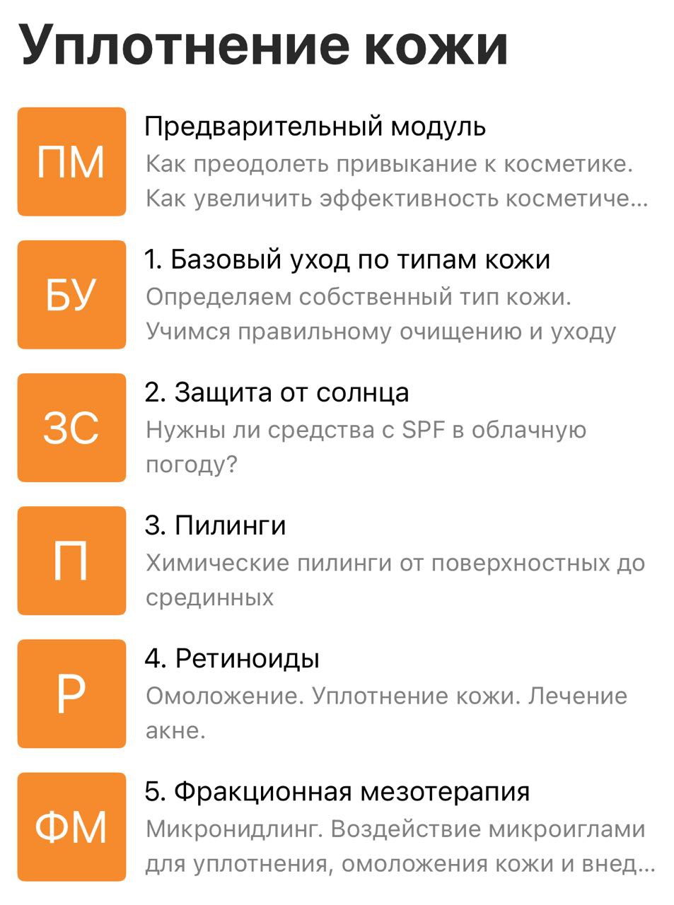 Методы уплотнения кожи доступны, как отдельные мини-курсы
